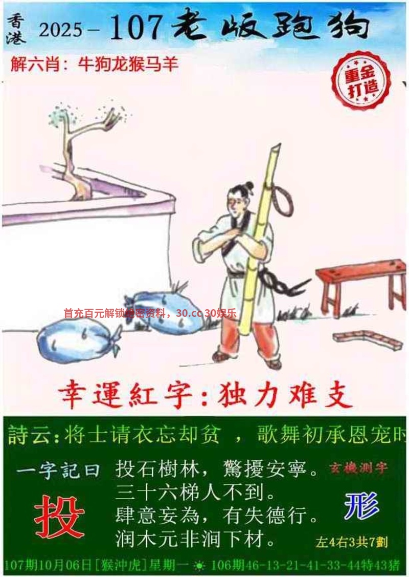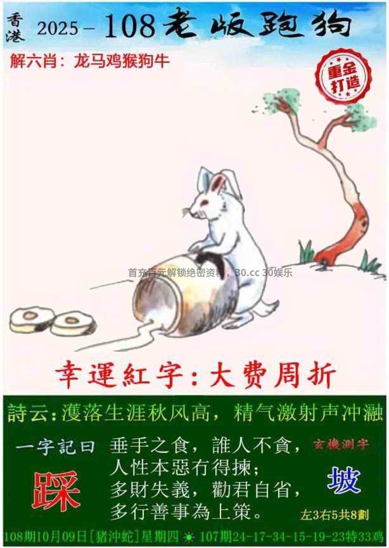 109期:独家玄机测字开:猪07准 |